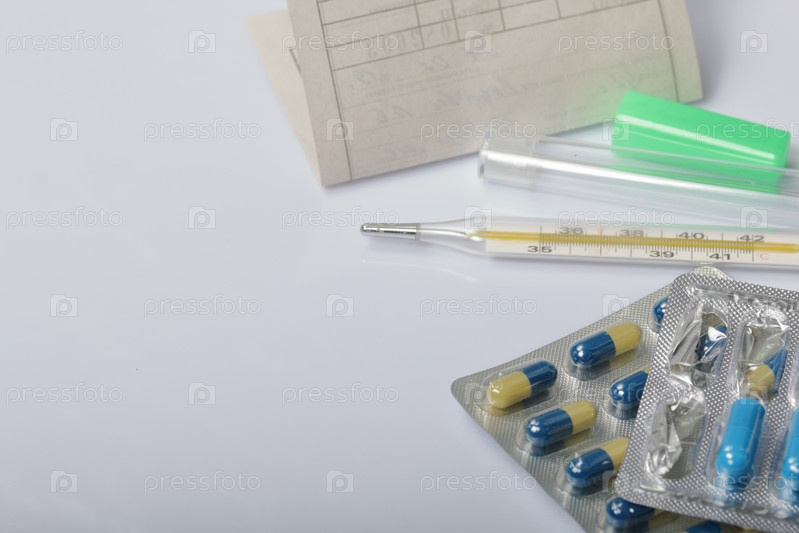 Лечение холодом. Таблетки Для снижения температуры при гриппе. Видна форма рецепта. Лягте рядом с термометром, чтобы измерить температуру тела