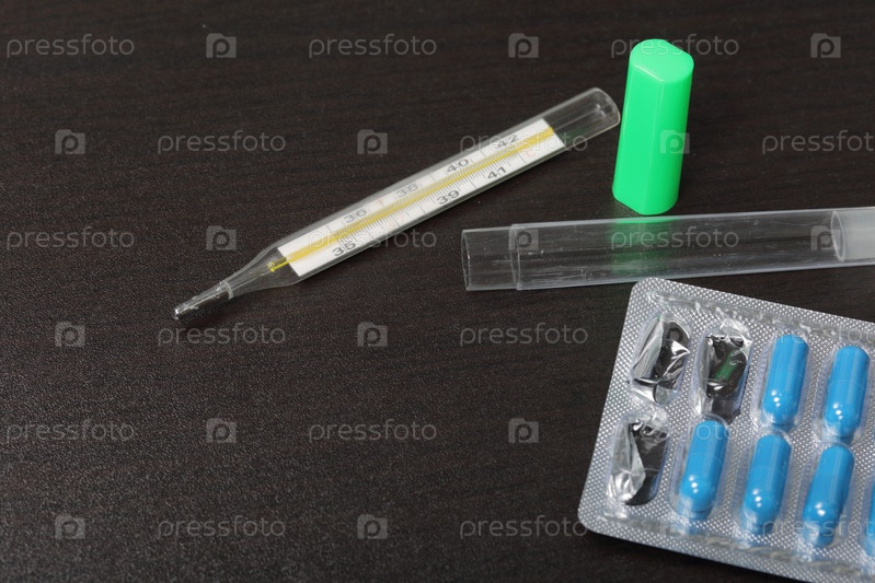 Лечение холодом. Таблетки Для снижения температуры при гриппе. Синего цвета. Лягте рядом с термометром, чтобы измерить температуру тела