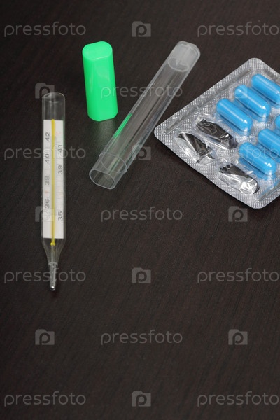 Лечение холодом. Таблетки Для снижения температуры при гриппе. Синего цвета. Лягте рядом с термометром, чтобы измерить температуру тела
