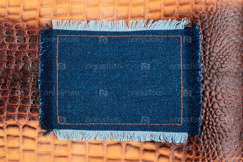 Рамка из джинсовой ткани с бахромой на коричневой коже крокодила, с местом для текста