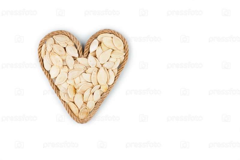Символическое сердце из веревки с тыквенными семечками