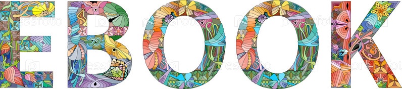 Ручная роспись художественного дизайна.Ручно нарисованное иллюстративное слово EBOOK для футболок и других украшений