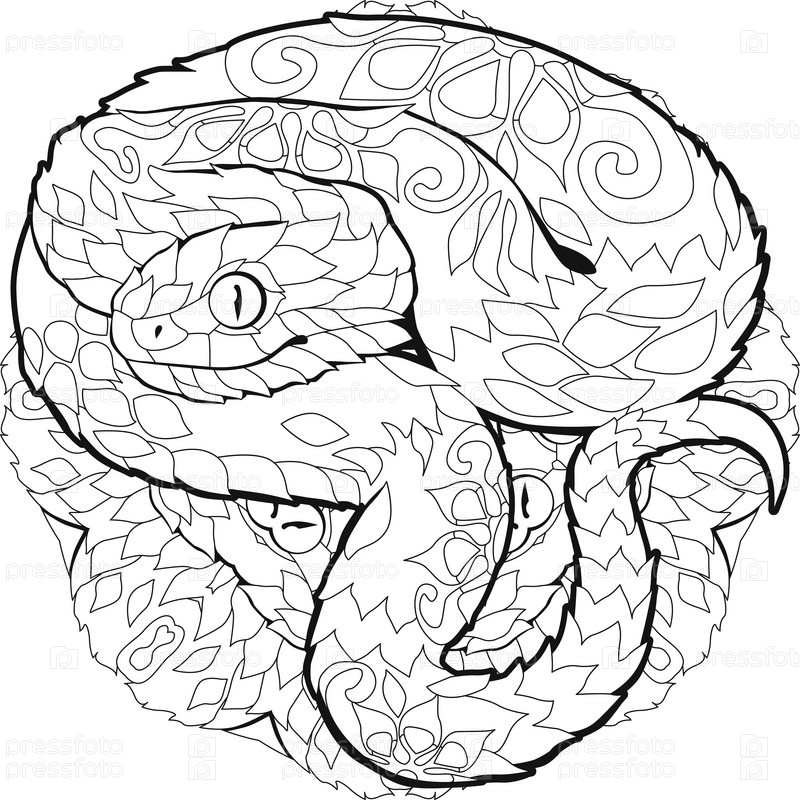Зентанглная змея для раскрашивания мандалы. Ручная рисованная декоративная векторная иллюстрация