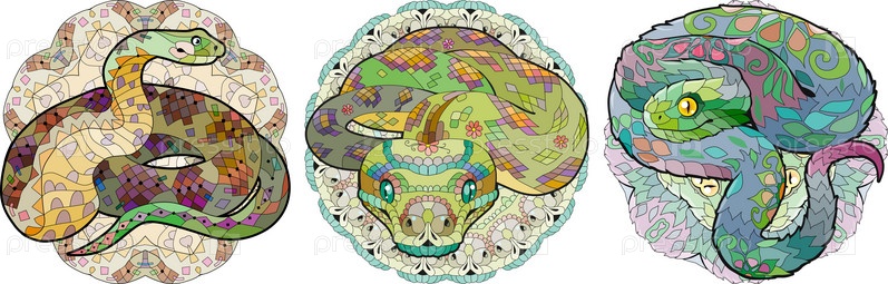 Нарисованные вручную зентангловые змеи для футболок и других украшений