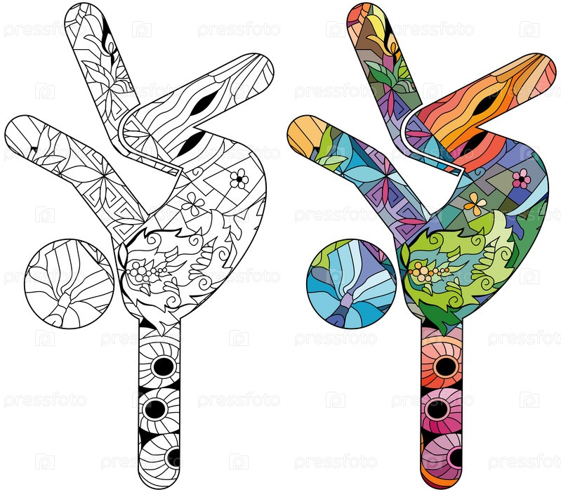 Икона BREAK DANCING для окраски в стиле абстрактного рисунка рукой. набор цветов и контуров
