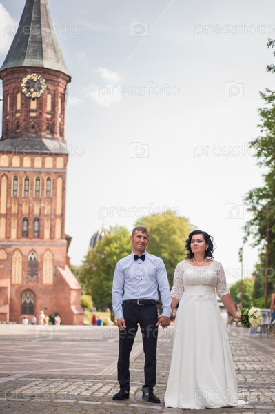 Молодожены на фоне старинных построек