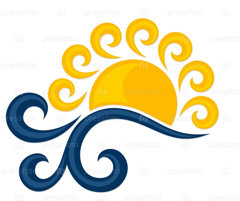Логотип рассвета солнца в синем море