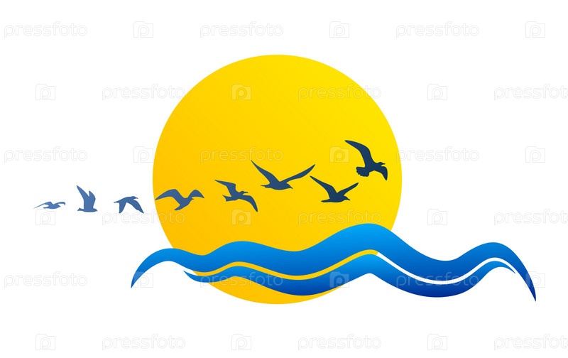 Логотип солнца с морем и чайками