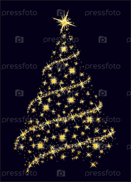 Открытка с золотым новогодним деревом