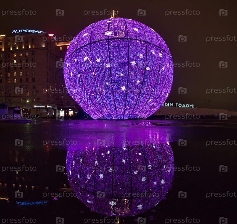 Москва. Россия. 20 декабря 2020 года. Огромный новогодний светящийся шар на Кутузовском проспекте у входа в Парк Победы