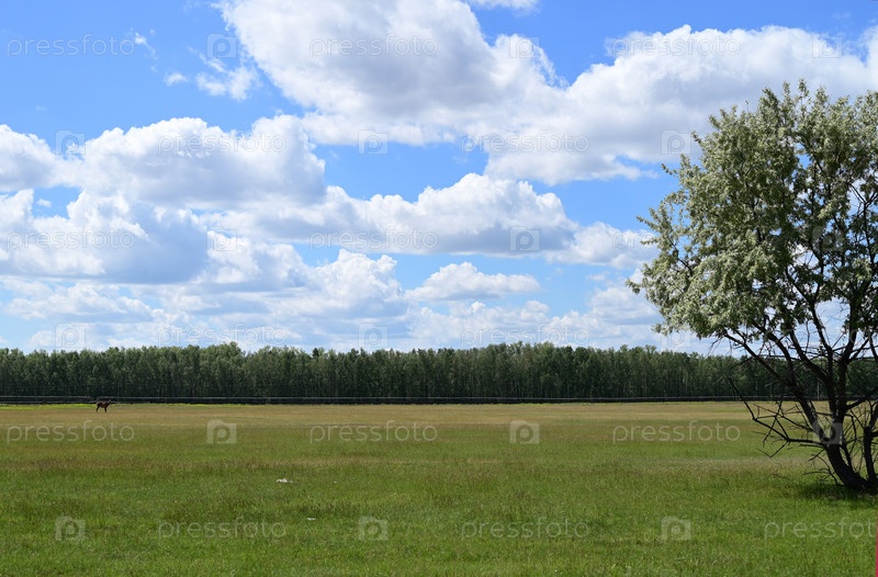 Пейзаж с красивыми облаками и лесом