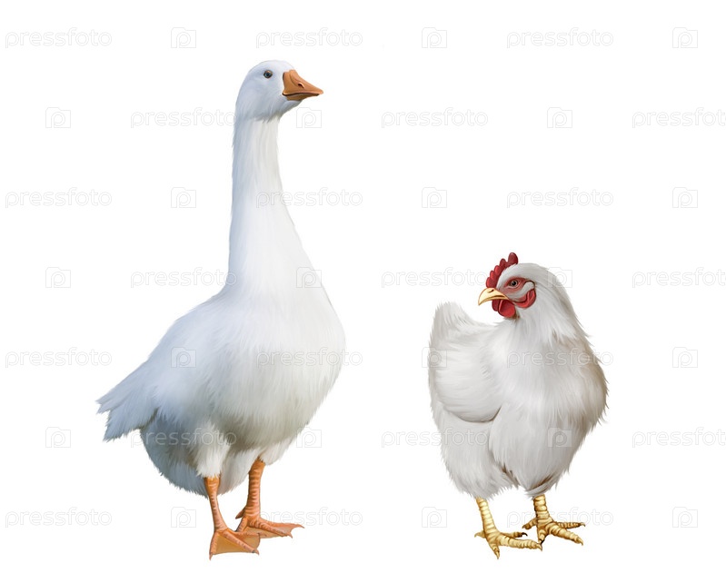 Белый гусь и белая курица