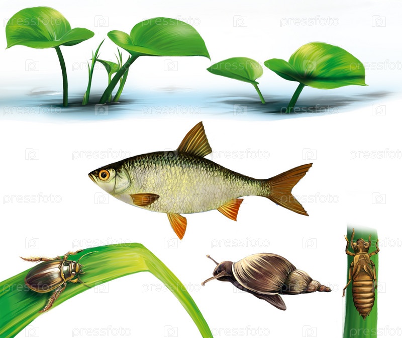 Улитка, личинки, пескарь
