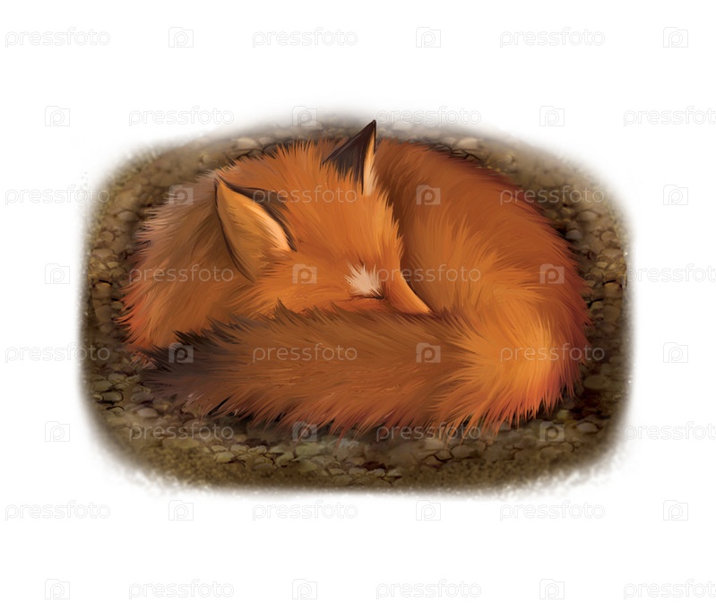 Спящая рыжая лисица в норе