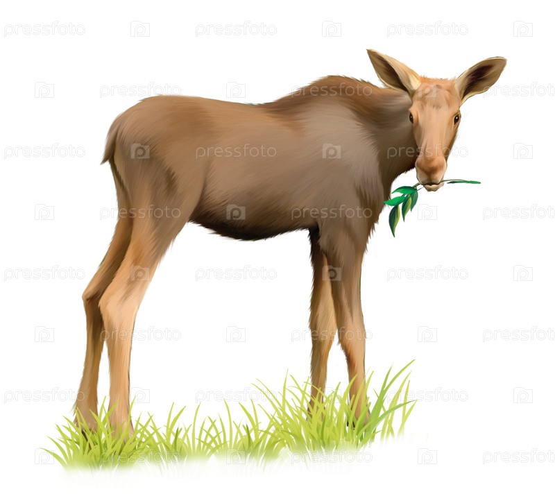 Лосенок ест ветку дерева