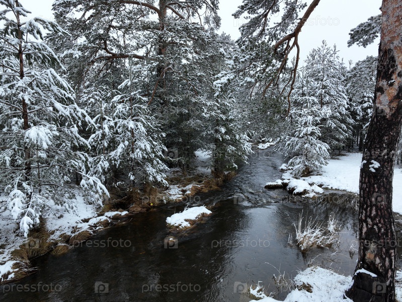 Удивительный кинематографический вид с воздуха на замерзающую реку. Аэрофотоснимок полета над замерзшим ручьем, живописный вид на природу