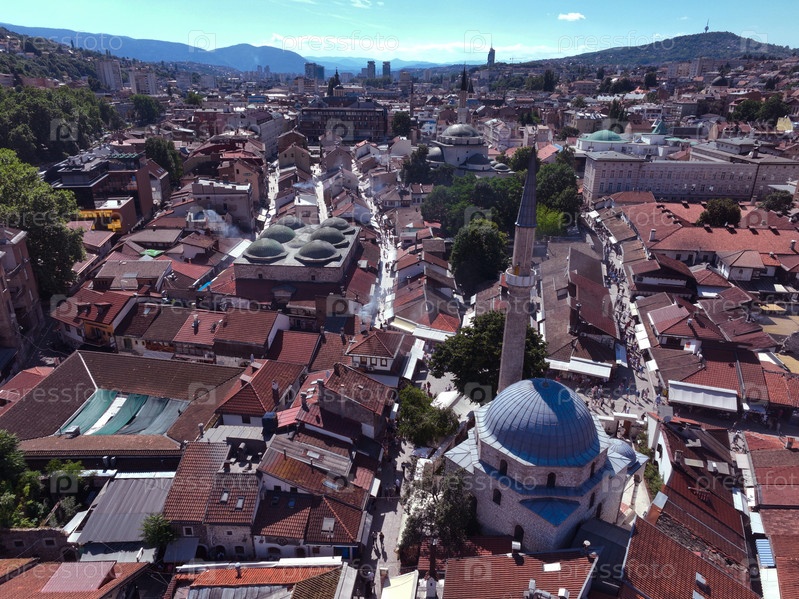 Национальная библиотека Сараево, вид с дрона на историческую старую ратушу