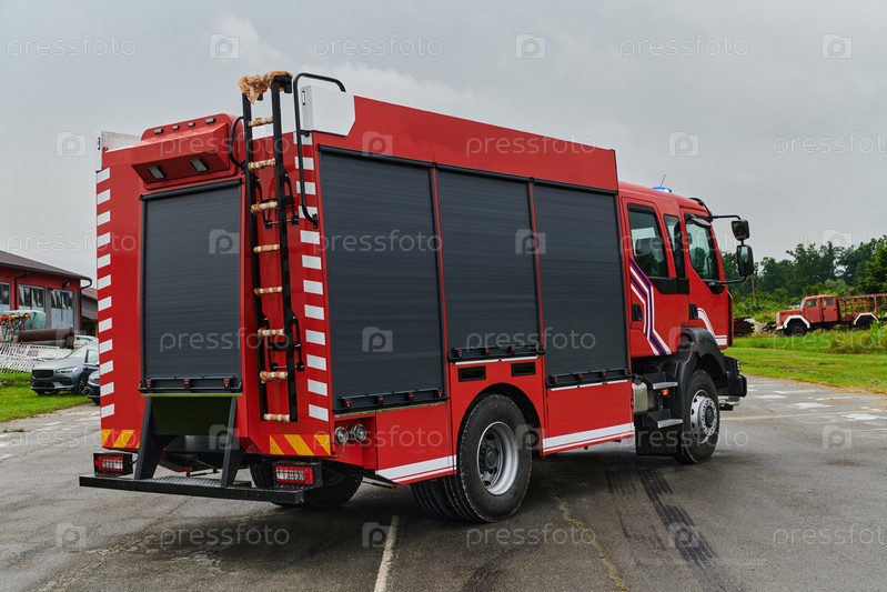 В этой захватывающей сцене современная пожарная машина, оснащенная передовыми спасательными технологиями, вместе со своей опытной пожарной командой готова вмешаться и быстро отреагировать на чрезвычайные ситуации, обеспечивая безопасность и защиту населен