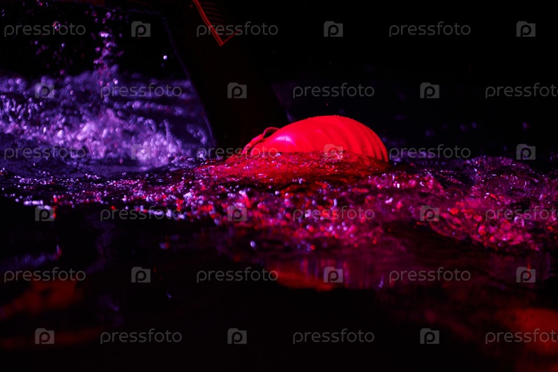 Настоящий пловец-триатлет, отдыхающий во время тяжелых тренировок при ночном неоновом гелевом свете