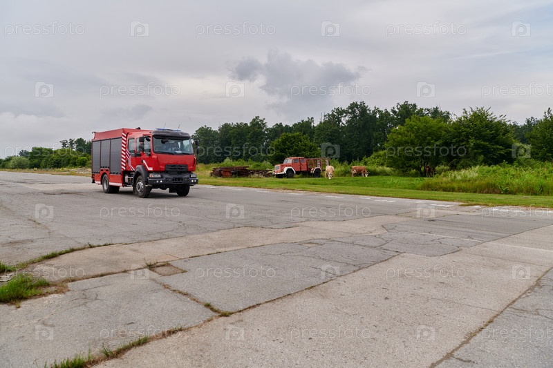 В этой захватывающей сцене современная пожарная машина, оснащенная передовыми спасательными технологиями, вместе со своей опытной пожарной командой готова вмешаться и быстро отреагировать на чрезвычайные ситуации, обеспечивая безопасность и защиту населен