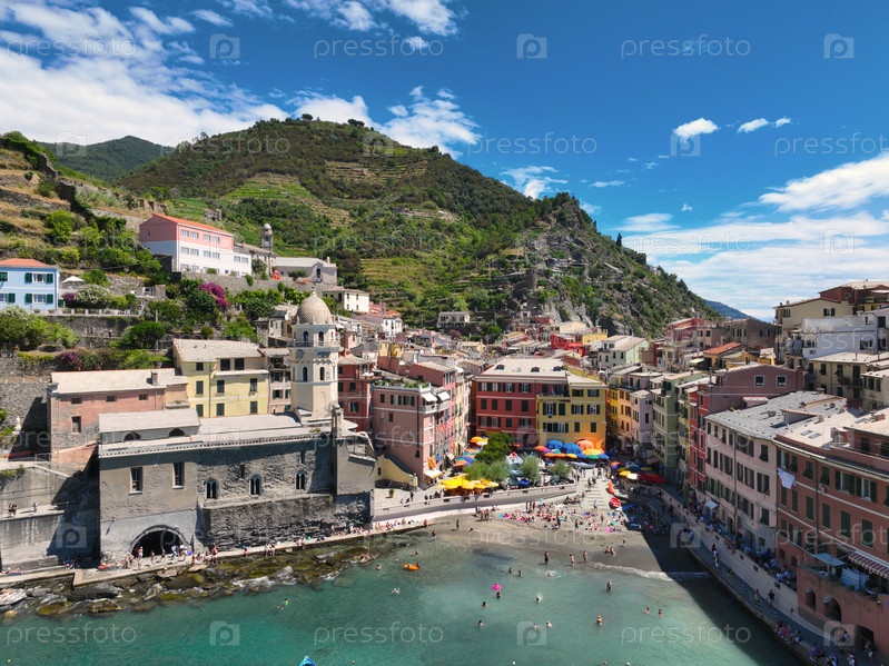 Деревня Манарола на побережье Чинкве-Терре, Италия. красочный городок в Лигурии, один из пяти Чинкве-Терре. Традиционная итальянская деревня Манарола в Национальном парке Чинкве-Терре, с разноцветными домами на скале