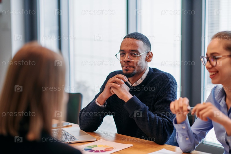 В оживленной атмосфере современного стартап-офиса разноплановая команда бизнес-профессионалов обсуждает различные проекты и разрабатывает новые бизнес-стратегии, олицетворяя креативность и инновации в предпринимательской сфере