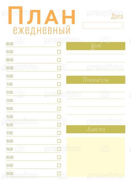 Шаблон ежедневного плана с простым дизайном