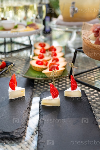 Красиво украшенный стол, наполненный вкуснейшими закусками, десертами, сыром, крекерами, фруктовыми пирогами и выпечкой. Идеально подходит для свадеб, юбилеев, дней рождения и т. д