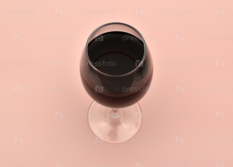 Стеклянный бокал с вином на розовом фоне. Вино в бокале