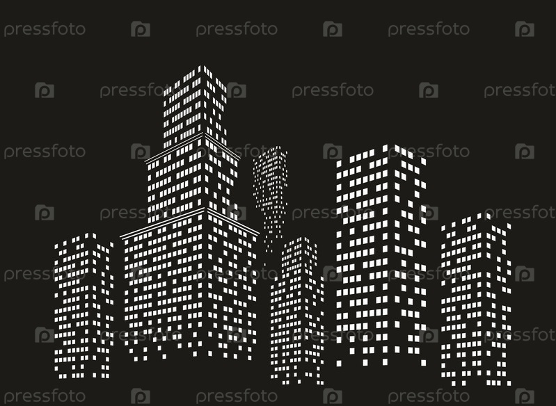 Ночной городской пейзаж с высотными зданиями
