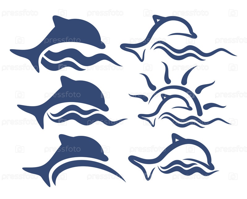 Набор логотипов с голубой волной и дельфинами