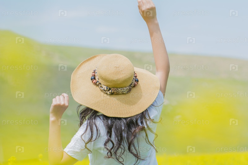 Девушка вернулась на поле в цветах