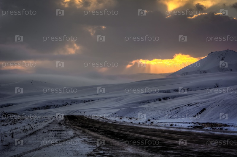 Восход солнца в Суусамырской долине, Кыргызстан, выборочный фокус