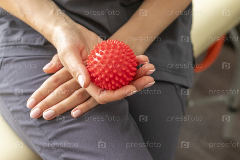Снимок женщины-врача-мануального терапевта, держащей портативный массажный мяч. Здравоохранение