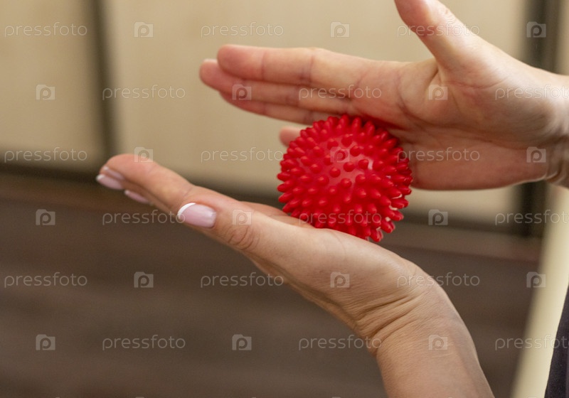 Снимок женщины-врача-мануального терапевта, держащей портативный массажный мяч. Здравоохранение