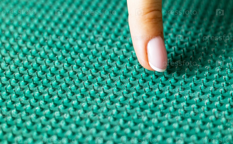 Крупный план акупунктурного коврика для массажа и облегчения боли. Здравоохранение