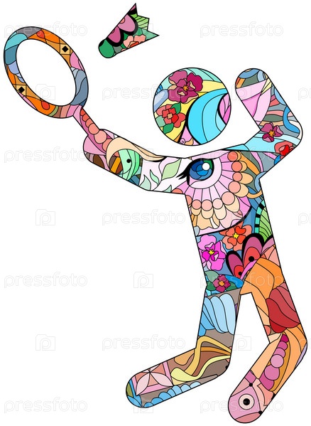 Ручная роспись художественного дизайна. Нарисованная рукой иллюстрация Значок игры в бадминтон для футболки и других украшений