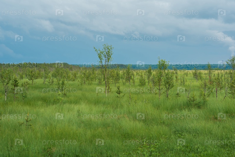 Пейзаж с торфяной топью и небольшими березами