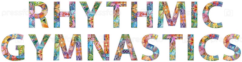 Ручная роспись художественного дизайна. Нарисованные от руки иллюстрации слова ХУДОЖЕСТВЕННАЯ ГИМНАСТИКА для футболки и других украшений
