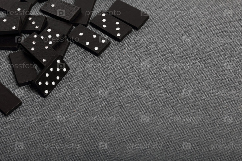 Домино костяшками пальцев лежит на поверхности, покрытой грубой серой тканью