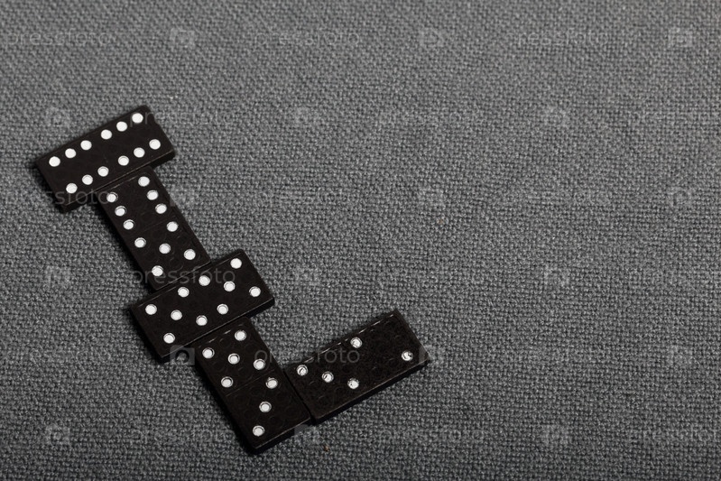 Домино костяшками пальцев лежит на поверхности, покрытой грубой серой тканью