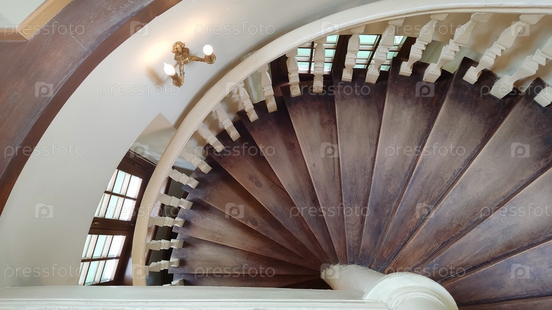 Античная коричневая деревянная винтовая лестница