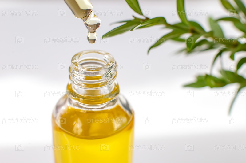 Закройте желтую каплю эфирного или органического масла в стеклянной пипетке над бутылкой