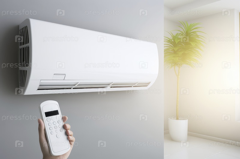 Кондиционер, контроль температуры с пульта, охлаждение. Копировать пространство