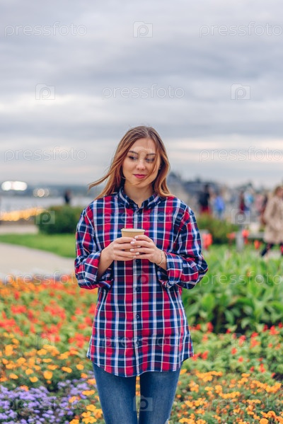 Красивая молодая женщина держит чашку кофе