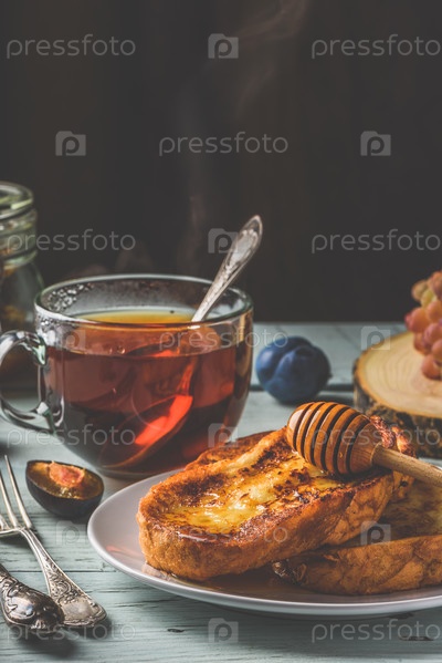 Французские тосты с медом, фруктами и чаем