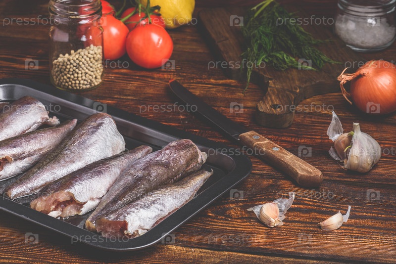 Тушки хека на противне