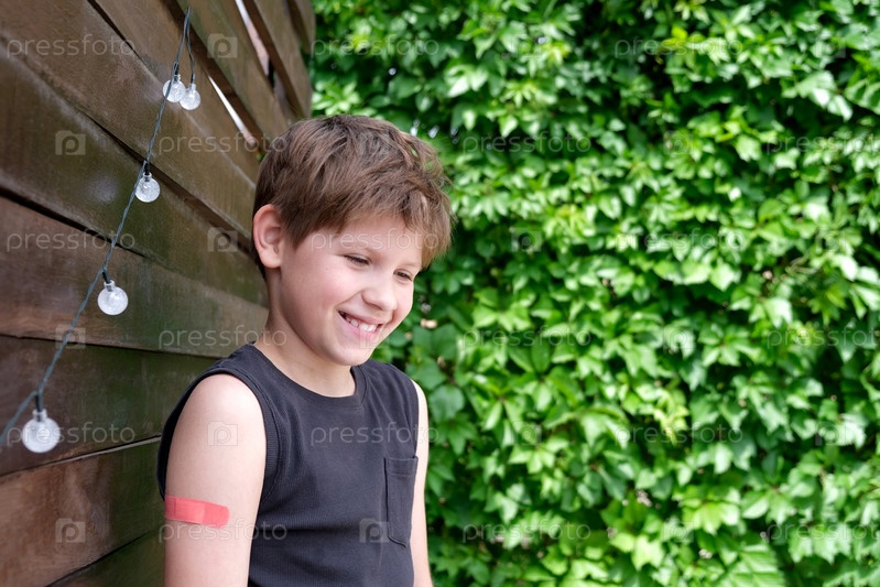Мальчику сделали прививку от коронавирусной инфекции. Вакцинация против ковид-19. Копировать пространство