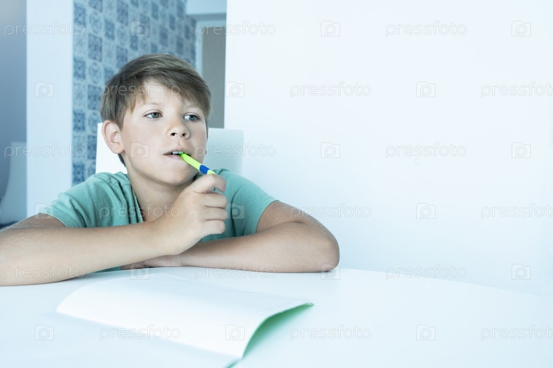 Мальчик с книгой делает домашнее задание. Обратно в школу. Несчастный школьник с учебниками. Дистанционное обучение