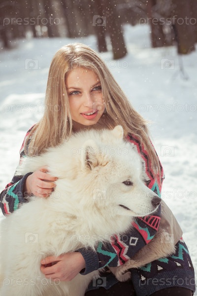 Девушка с самоедской лайкой